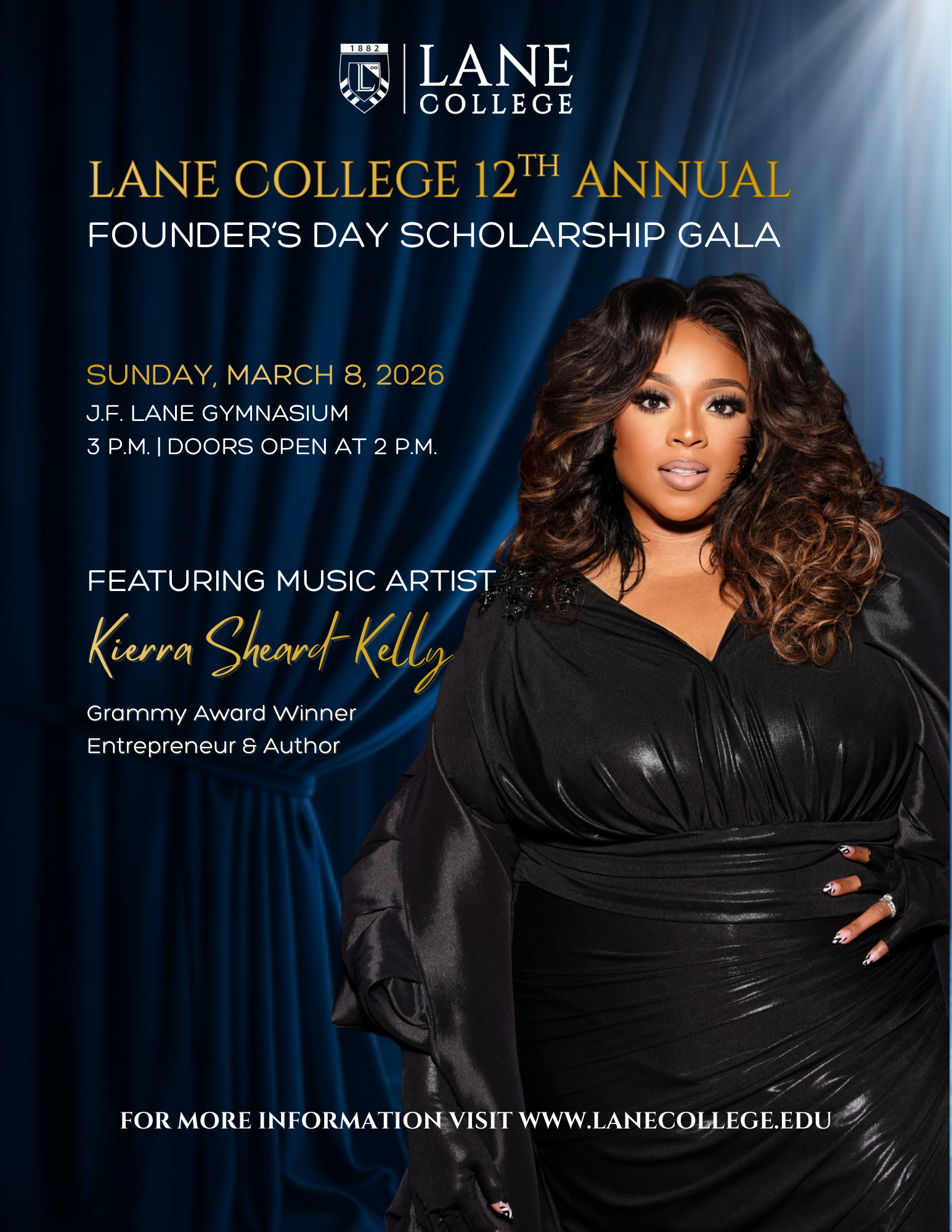 This year’s event will feature a special performance by Grammy Award-winning music guest, Kierra Sheard-Kelly, whose artistry and influence align with the College’s mission of faith, leadership, and service.